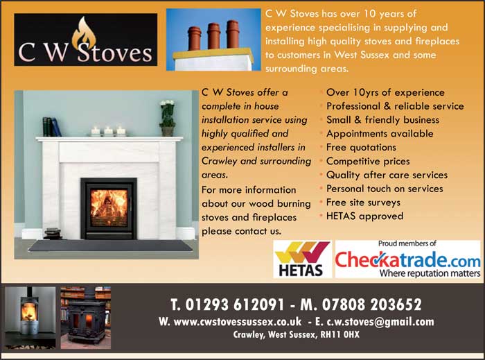 C W Stoves have over 10 years of experience specializing in supplying and installing high quality stoves and fireplaces to customers in Sussex and surrounding areas.