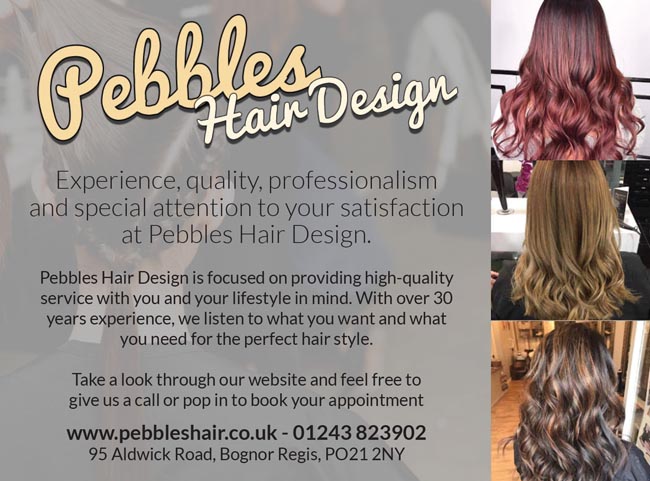 ADDRESS & CONTACT Address 95 Aldwick Road, Bognor Regis, West Sussex GPS 1, 1 Telephone 01243 823 902 Email pebbleshair@hotmail.co.uk Web http://www.pebbleshair.co.uk Social Media Facebook Twitter / X Instagram Linkedin YouTube TikTok Pinterest IMAGE GALLERY OPENING TIMES
