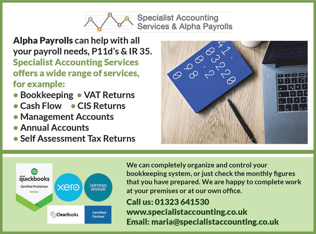 ADDRESS & CONTACT Address Eastbourne, Sussex GPS 1, 1 Telephone 01323 641 530 Email maria@specialistaccounting.co.uk Web http://www.specialistaccounting.co.uk Social Media Facebook Twitter / X Instagram Linkedin YouTube TikTok Pinterest IMAGE GALLERY OPENING TIMES