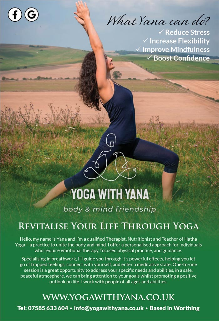 ADDRESS & CONTACT Address Worthing, West Sussex. GPS 1, 1 Telephone 07585 633 604 Email info@yogawithyana.co.uk Web https://yogawithyana.co.uk Social Media Facebook Twitter / X Instagram Linkedin YouTube TikTok Pinterest IMAGE GALLERY OPENING TIMES